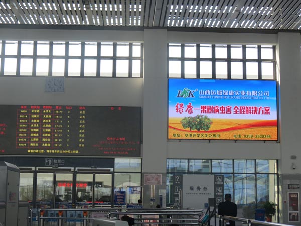 近幾年,隨著運城市的快速發(fā)展,東部逐漸被開發(fā)利用,機場、高鐵站、客運站也依次坐落于運城東部,地理優(yōu)越,交通便利。2015年10月,綠康公司在運城高鐵站投資的廣告牌投入使用,高鐵站人流量大,廣告牌處于入站口處,位置醒目。在進一步加大公司知名度的同時,也彰顯了綠康公司在山西省農作物病蟲害防治方面的地位。
