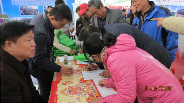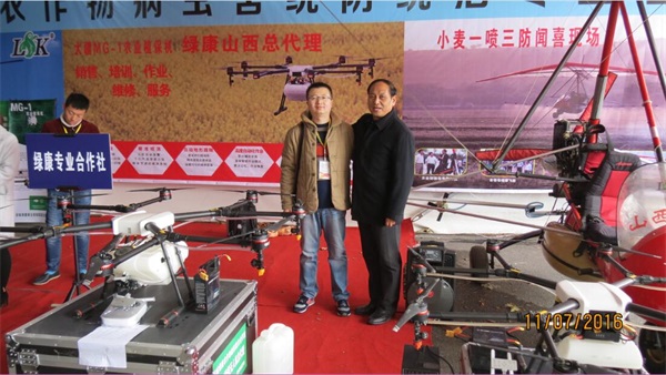 山西運城綠康實業(yè)有限公司對這次農(nóng)展會非常重視,重點打造了兩大參展主題:一是在農(nóng)展館以北300米左右的農(nóng)資展廳設(shè)立了一個展位,主要用于綠康農(nóng)作物病蟲害統(tǒng)防統(tǒng)治合作社展示飛防機械:美國原裝進口安塔瑞斯MA-34 R582XB農(nóng)藥噴酒飛機2架,同時還配備各種地面防治機械設(shè)備多臺,大疆MG-1農(nóng)藥植保機三臺,工作人員向前來咨詢的群眾發(fā)放相關(guān)宣傳資料,熱情詳細介紹并現(xiàn)場進行試飛表演,不少群眾看完以后怦然心動,紛紛向工作人員了解價格及使用方法。二是在相鄰的農(nóng)資展館設(shè)立了一個大展臺,展臺上下,綠康的各種農(nóng)藥、資料擺放整齊,工作人員在現(xiàn)場向果農(nóng)發(fā)放資料袋,內(nèi)裝有相關(guān)農(nóng)藥的性能、用途等宣傳資料,附贈有一張財神爺?shù)哪戤?。直營部的劉杰一經(jīng)理耐心的手把手教給果農(nóng)掃描年畫下方的二維碼,并接受果農(nóng)現(xiàn)場技術(shù)咨詢,綠康工作人員誠懇的態(tài)度和周到的服務(wù)受到參展果農(nóng)的一致好評。
