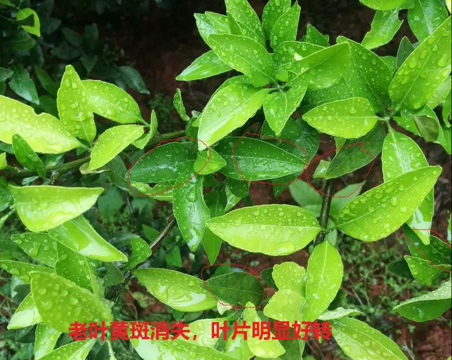 我們建議使用凱露森(2000倍)+黃變綠(1000倍)連續(xù)使用兩次進(jìn)行改善。經(jīng)過兩次使用后觀察,果樹情況大有改觀。【2018年5月8日觀察】