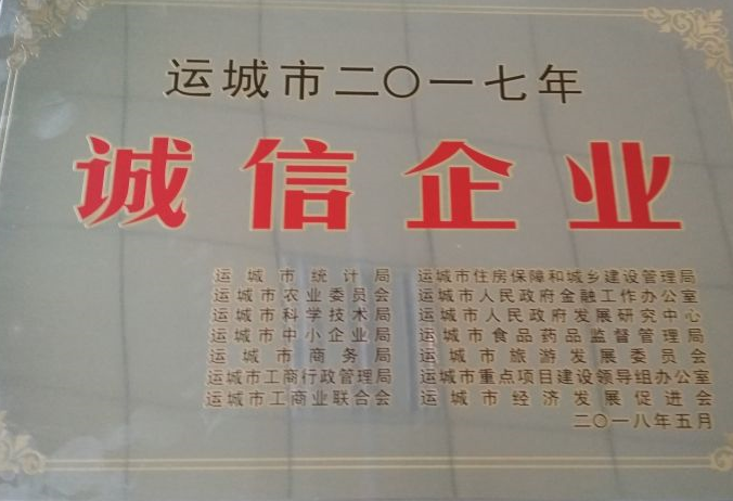 山西運城綠康實業(yè)有限公司榮獲“運城市二零一七年度誠信企業(yè)‘’榮譽稱號