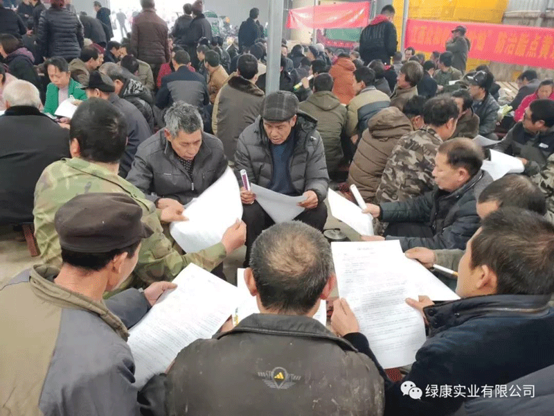 會議正式開始之前綠康工作人員向農(nóng)戶發(fā)放柑橘種植管理技術(shù)一覽表,農(nóng)戶學(xué)習(xí)的熱情很高,都在認真閱讀。